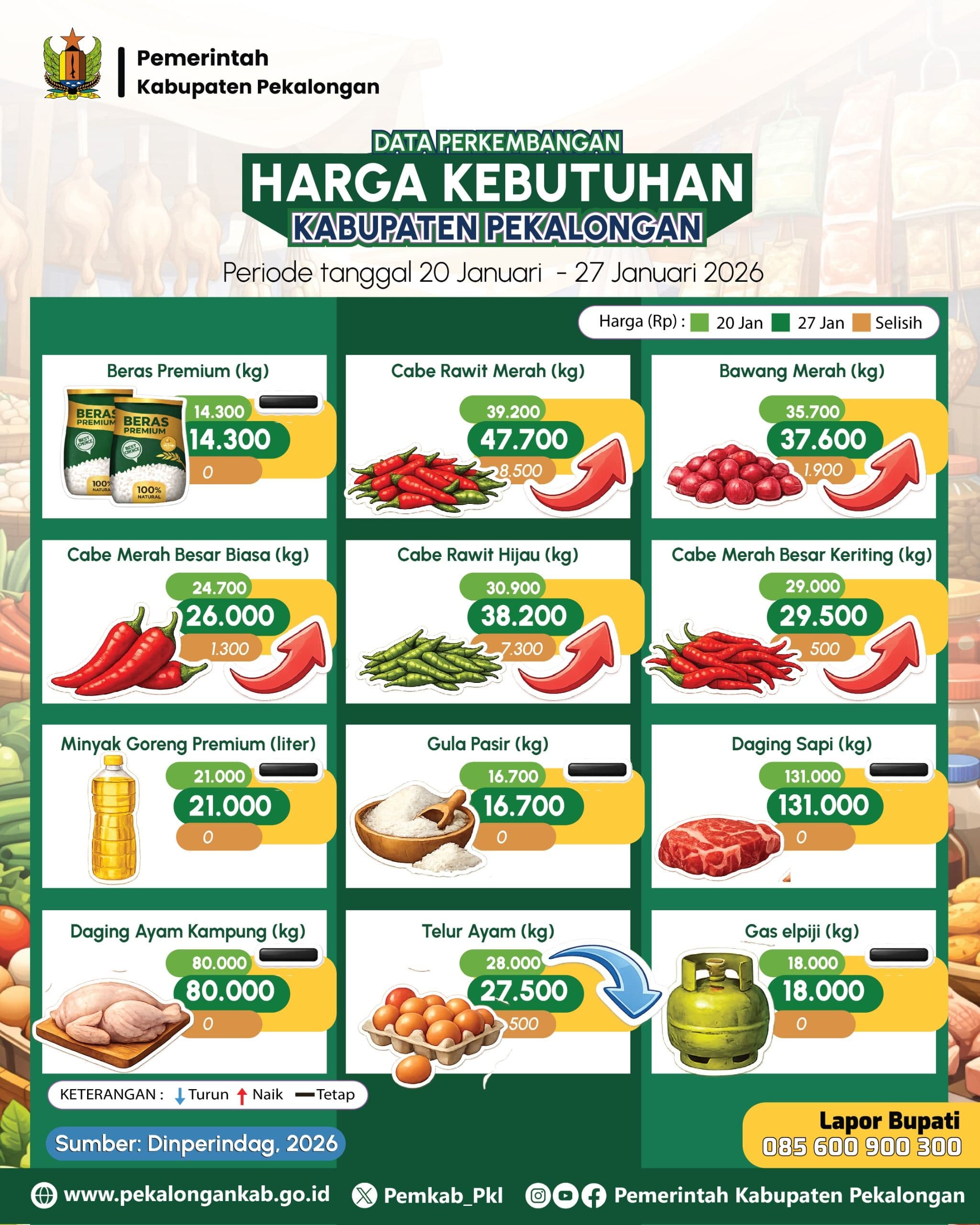 “Kabupaten Pekalongan saat ini masih dalam posisi tanggap darurat hingga 9 Februari 2026. Dalam sepekan terakhir, bencana terjadi cukup luar biasa dan berdampak hampir di seluruh wilayah, mulai dari wilayah atas, tengah, hingga pesisir,” ujarnya.